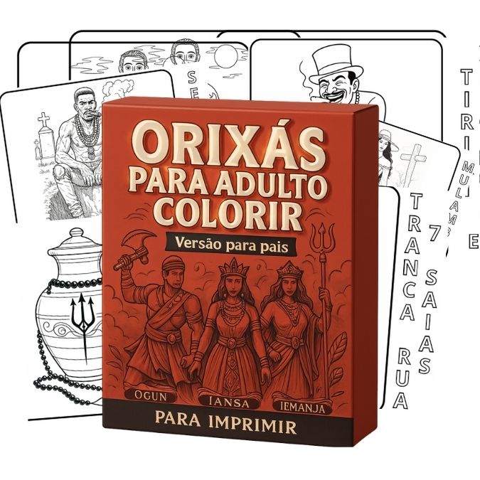 Colorir se torna o caminho mais leve, respeitoso e seguro para apresentar cores, símbolos e elementos dos Orixás ao seu filho — enquanto você mesma aprende junto.